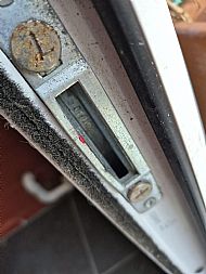 With multipoint locking systems its virtually impossible when the door is closed to identify which frame keep needs to be adjusted, however to make things easier our locksmith in St Helens Derek used lipstick to mark the hooks so when the door is closed he can see which keeps need adjusting as the lipstick marks the keep (see above picture).